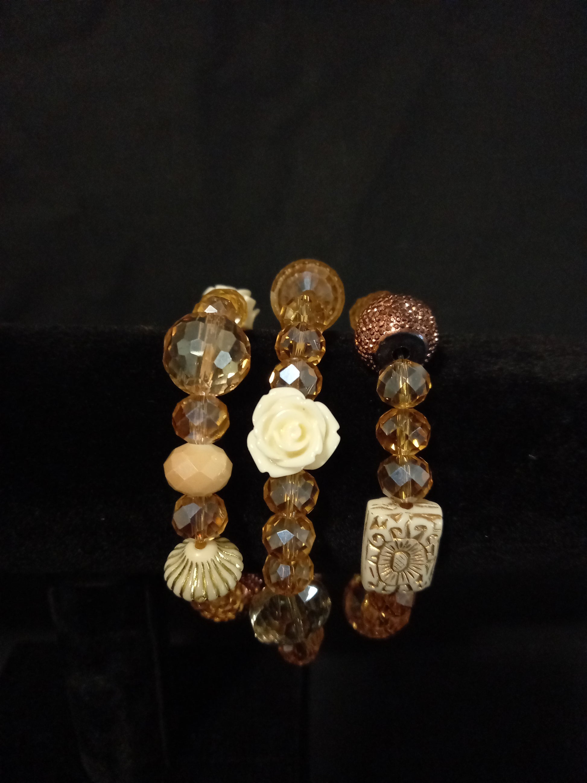 Champagne Rondelle glass beads mix with Jesse James beads.